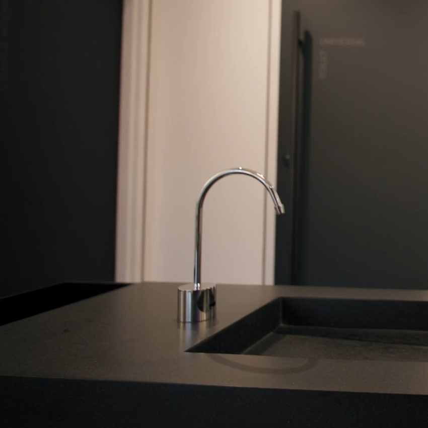 When users place a hand in front of the sensor and positions a glass or bottle under the spout with the other hand, the touch free glass filler faucet will automatically activate. The flow will stop as soon as the user removes their hand from the sensor range.