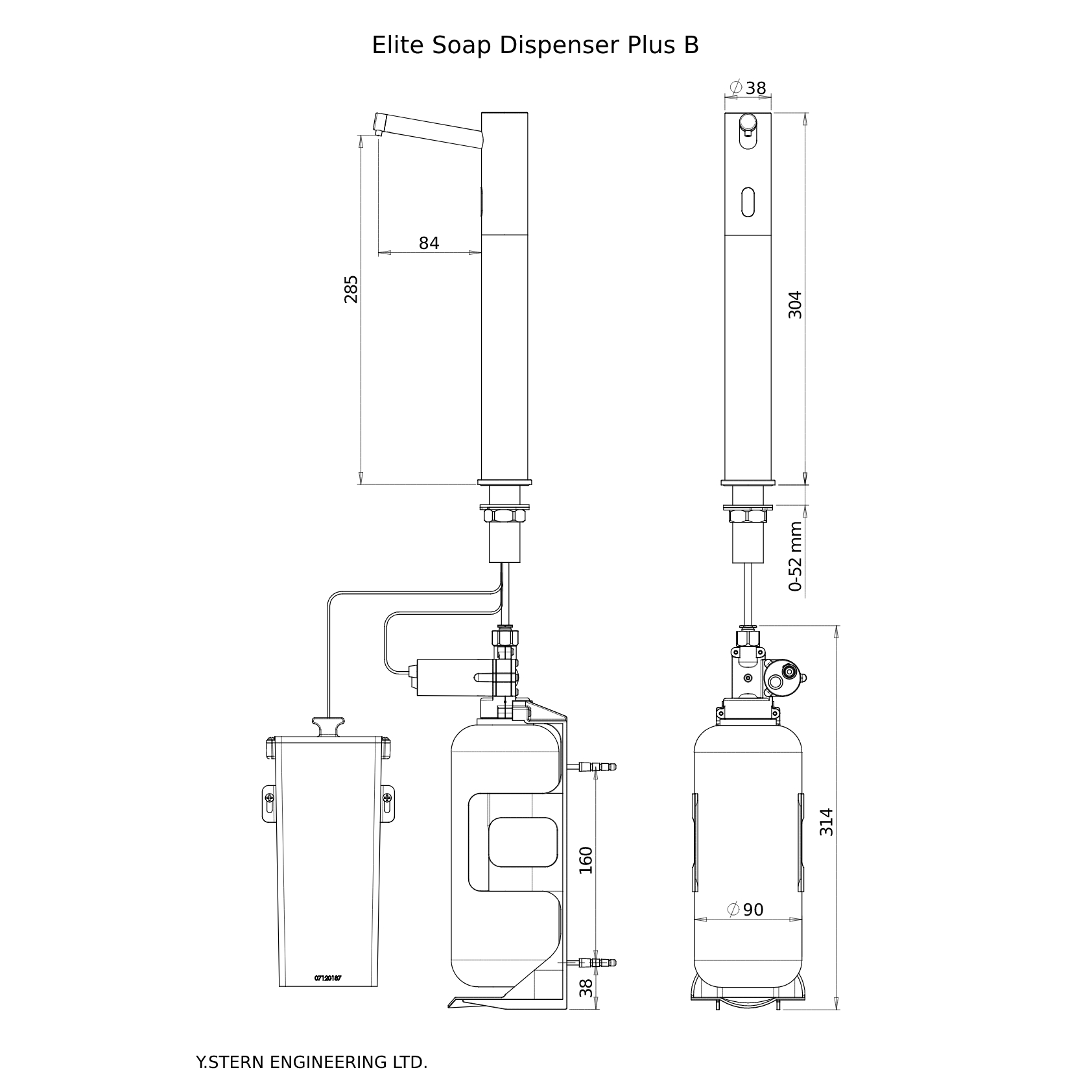 Closing automatically without dripping, Stern´s touch free soap dispenser helps to ensure that the bathroom will stay organized and neat. Combined with Elite touch free electronic faucet, it creates a germ free and automated environment.