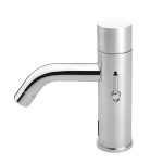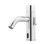 Touch free electronic commercial tap for deck mounted installations. For hot and cold water, the faucet includes a mixer to adjust water temperature and filters. Activated by an infrared sensor. Chrome plated body, other finishes available. Includes a low battery indicator. Latching solenoid valve is located above deck inside the product, which makes it more resistant to vandalism. Installed as a regular faucet, simply connect the battery to complete the installation.