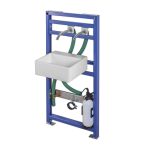 - The system includes mounting support for the *washbasin, faucet and dispenser.