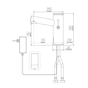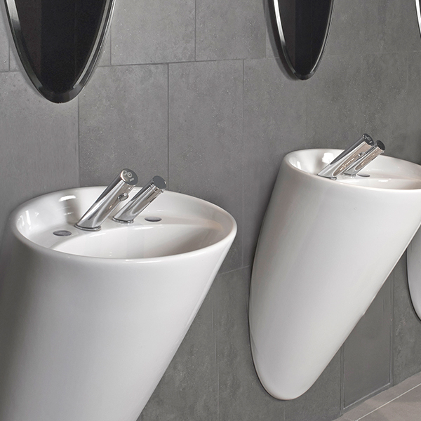 Deck-mounted electronic tap. Combining an elegant minimalist design with anti-vandal features. Easy installation. Long lasting even in the harshest installation sites. Helps washrooms stay clean and saves water. Prevents cross contamination. Ideal for stadiums, train and bus stations and highway rest stops.
