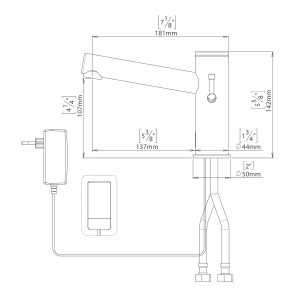 - Touch faucet – touch-operated self-closing electronic deck mounted faucet.