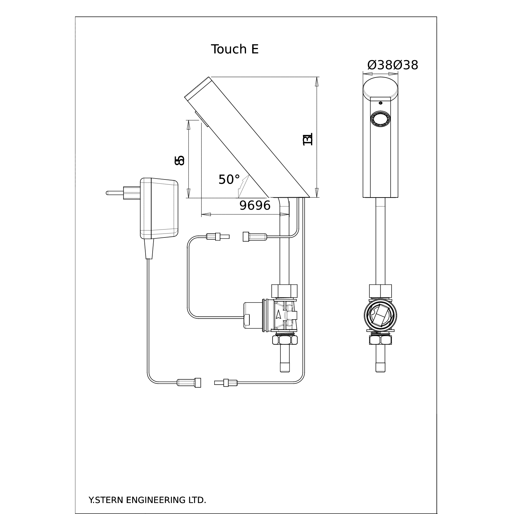 Touch-operated self-closing electronic commercial tap. For cold or premixed water. Filter included. The faucet will automatically shut off after a factory set flow time of 8 seconds would pass. Flow time is adjustable on site.