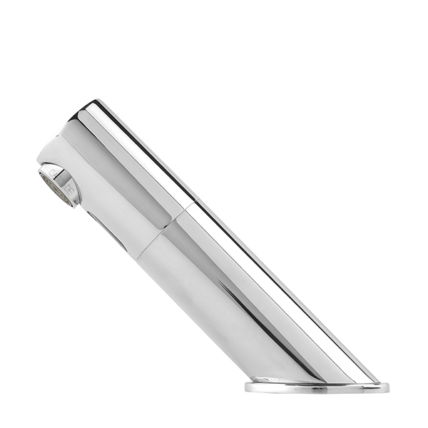 Deck mounted faucet combining an elegant design with anti-vandal features. The faucet includes a dual power input box that can be used to operate the product by battery or transformer. When used with a transformer it has an integrated automatic battery backup. Helps washrooms to stay cleaner and to save water. Prevents cross contamination. Ideal for stadium, train and bus stations & highway rest stops.