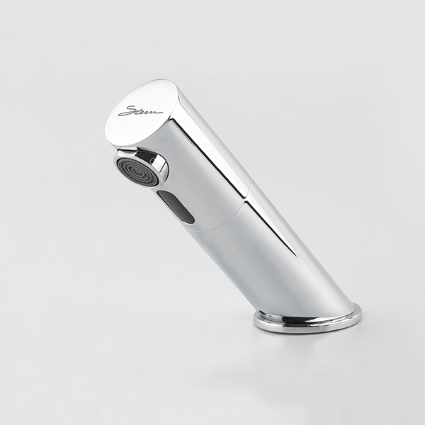 Touch free electronic commercial tap for deck mounted installations. For cold or premixed water, activated by infrared sensor. Latching solenoid valve is located in the IP67 water proof dual power input box. Faucet will automatically shut off after being used for more than 90 seconds. Sensor features a low battery level indicator. The following settings can be changed by using the Stern remote control: Sensor Range, Security Time, Delay In, Delay Out and On-Off.