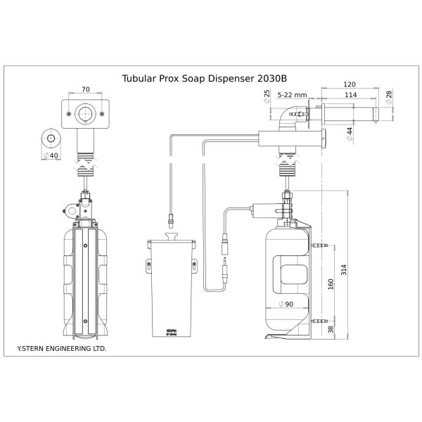 - Tubular Prox 2030 Automatic Soap Dispenser for installations in brick walls.