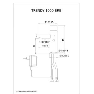 Touch free electronic commercial tap for wall mounted installations. To be used with cold or premixed water. Activated by an infrared sensor unit located below the faucet body. Chrome plated body, other finishes available. Includes a low battery indicator. The following settings can be changed by using the Stern remote control: Sensor Range, Security Time, Delay In, Delay Out and On-Off.